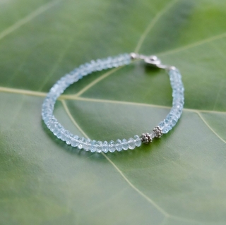 JUGEMテーマ:天然石アクセサリー こんばんは^^ 続きましてブレスレットのご紹介です。 水のブレスと名付けました。 使用しました石… ・宝石質アクアマリンボタンカット ・ゴシェナイトボタンカット ・シルバー925パーツ サイズは16cmです。変更可能ですので、ご希望の際はサイズをご記入の上メッセージくださいね。 キラキラと輝く宝石質アクアマリンを シンプルなデザインのブレスレットに致しました。 ...