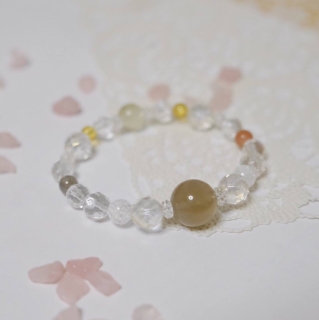 JUGEMテーマ:天然石アクセサリー こんにちは^^ 続きましてブレスレットのご紹介です。 今、ここから始まるブレスレットと名付けました。 使用しました石… ・日本産スモーキークォーツ16mm ・リビアンクラス10mm ・ブルーアンバー6mm ・ムーンストーン4mm ・サンストーン6mm ・ラブラドライト6mm ・アクアオーラカット10mm ・クラック水晶8mm ・水晶ボタンカット ・水晶スターカット サイズは16cmとなっております。変更可能で...