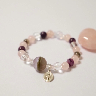 JUGEMテーマ:天然石アクセサリー こんばんは^^ 本日2つ目の記事です。 2つ目は、最近とってもお気に入りの石の一つである ラベンダーカルセドニーをふんだんに使ったブレスレットを作りました。 愛のブレスレット名付けました。 使用しました石… ・天然色ラベンダーカルセドニー10mm ・ローズクォーツ3mm ・イタリア製聖母マリアメダイパーツ サイズは16cmです。ご変更も承ります。(サイズがあまりに大きい場合は金額upさせて頂...