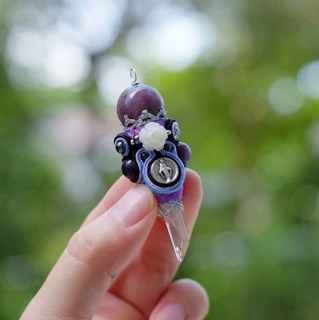 JUGEMテーマ:天然石アクセサリー こんばんは^^ 日付が変わりましたが、先ほどのブログに書きました shopカテゴリに掲載の 新作のペンデュラムのご紹介をさせて頂きます。 魔法使いのペンデュラムと名付けました。 ・全体の長さ…5.9cm ・チャロアイトの大きさ…1.6cm ・ポイント部分の長さ…見える部分で2.2cm ・飾りと致しまして、スギライト8mm、クラック水晶4mm、ヘマタイト4mm、3mm、 マザーオブパール薔薇カット、イタリア...