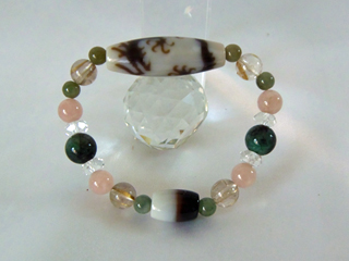 JUGEMテーマ:天然石アクセサリー 白龍神天珠は、五本の爪を持つ龍で、三本の爪を持つ 若い龍とは少し違いがあります。 皇帝を表す龍として、管理職とかオーナーで、人を管理する 龍だからです。人の才能を見極めたりある意味能力とか それを見極める目を持つ天珠です。 今は女性でも管理職にある方が多いので、女性らしい 繊細に描かれた龍をチョイスして、エメラルド(6月の誕生石) やピンクアクアマリン(モルガナイト)などでブレスレットに 仕上げました。 こちらは、すでにご注文...