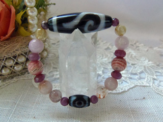 JUGEMテーマ:天然石アクセサリー 釣り針のような文様の天珠は、「金銭釣天珠(きんせんつりてんじゅ)」 といいます。対面の小さな天珠は、三眼天珠、福禄寿をもたらす天珠 として知られておりまして、幸せとお金と長寿を意味します。 ルビー・ゴールドルチル・クンツァイト・インカローズ などで構成してありまして、女性の幸せは、お金だけではなくて も釣り上げることができるように活動的なパワーを兼ね備える 夢をかなえる・飛躍したいと思う方のパワーストーン天珠ブレスレット です...
