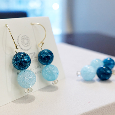 JUGEMテーマ:ハンドメイドアクセサリー JUGEMテーマ:天然石のアクセサリー JUGEMテーマ:天然石アクセサリー .。.:*・゚+.。.:*・゚+.。.:*・゚+.。.:*・゚+.。.:*・゚+.。.:*・゚+.。.:*・゚+.。.:*・゚+ 『 Rainy Drops 』 雨粒をイメージしたjewel。 深いブルーと水色が印象的な クラッククリスタルを雨粒に 見立ててみました♡ Enjoy the Rainy day ☔ クラッククリスタルのキラキ...
