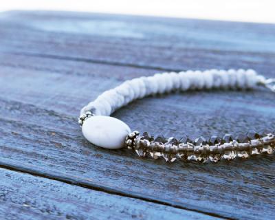 JUGEMテーマ:天然石アクセサリー ハウライトとスモーキークオーツのボタンカットブレス 〜Half2 by AB〜 2種類の天然石を半分ずつ組み合わせた、 オリジナルブランド 〜Half2 by AB〜 のブレスレット 今回は、ハウライトとスモーキークオーツのコンビです♪ とにかく、スモーキークオーツのボタンカットが すばらしくキレイなんです。 カットが施されているので、光を受けてまるで宝石のよ...