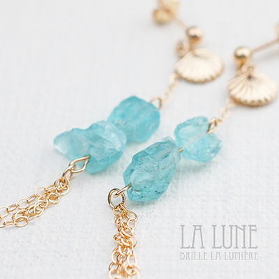 JUGEMテーマ:天然石のアクセサリー JUGEMテーマ:天然石アクセサリー .。.:*・゚+.。.:*・゚+.。.:*・゚+.。.:*・゚+.。.:*・゚+.。.:*・゚+.。.:*・゚+.。.:*・゚+ 『 RE; ARREVAL 』 シェルチャーム×アパタイトピアス🍍 淡い空色カラーが涼し気なアパタイトに、 シェルチャームを使用した夏色ピアス。 ラフロックカットのアパタイトの先で、 華奢チェーンがゆらゆら揺れます♡ 華奢ラインに仕上げていますので、 デイリー使いにもおすすめ◎ ++ Material ++ Apat...