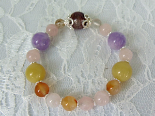 JUGEMテーマ:天然石アクセサリー トップにレッドからブラウンの針状鉱物の入った 透明度が抜群のルチルクォーツを取り合わせました。 お客様の持ち込みのブレスレットのリメイクです。 元々のブレスレットはこちらです。淡いパステルカラー がお好みだったようで、あまり付けなくなってしまったので、 ほんの少しスパイスの効いたブレスレットにしてみようと まずはリーディングから始めました。 ルチルクォーツにも入り込む針状鉱物によって ゴールドルチルクォーツはやはり金運に影響が及ぼすし どれに比べて紅針ル...