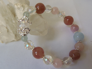 JUGEMテーマ:天然石アクセサリー 透明感が高く淡いピンクカラーのクンツァイトをセンターにアクアマリンの6mmで、 ストロベリークォーツを4個配置したブレスレットです。 透明なクンツアイトとベビーピンクのクンツアイトの両方の色合いが楽しめるように、 ブルーのアクアマリンとピンクアクアマリンとも言われるモルガナイト ピンク&ブルーの取り合わせは、愛のエネルギーを高めながらオーラを輝かせ 良い出会いを引き寄せるように働いてくれます。 人間不信で心が固まってしまっていてもその封印された感情や心の痛...