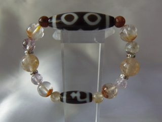 JUGEMテーマ:天然石アクセサリー 三眼天珠と宝瓶天珠にゴールドルチルクォーツをつけてみました。 あわせたのは、レッドファントムルチルクォーツです。 山状のファントムとよばれる鉱物は、水晶が成長する際に 一旦成長をとめて、再び成長始めたものです。 エネルギー活性化が強く困難や挫折を乗り越える開運の石とされています。 12ミリのゴールドルチルクォーツは金運石として知られていますが、 それにスーパーセブンをつけました。七種の鉱物のエネルギーを内包し 霊的エネルギーが高く宇宙意識を目覚めさせ潜在能力を...