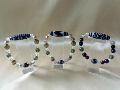 JUGEMテーマ:天然石アクセサリー 虎牙天珠ゆかりのブレスレットです。左から 虎牙六眼天珠 虎牙天珠 虎牙蓮花三眼天珠 虎が獲物を狙って鋭い目でじっと見下ろすように 機会を狙って油断なく形勢をうかがう様を 虎視眈々(こしたんたん)といいます。 虎視(こし)とは、雄大な志をいだいて、静かに情勢をうかがう ことをさして、チャンス到来をいろんな準備をととのえて、 ぬかりなく持って生まれた才能を発揮できる攻めに昂じる嵐の前の 静かさでしょうか? 静謐の雰囲気がだだよう天珠ブレスです。 宇宙からの叡智...