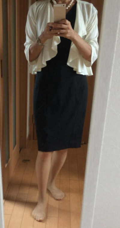 こんにちは!涼しくなって秋が急にきた感じ。出かけるときに着る洋服も迷いますね〜。今日は黒のワンピースを着てみました。半袖だから真夏も着るけど、今くらいの気温なら暑苦しくないかな。これは確か日本橋高島屋のベラルディというショップで一目ぼれして買ったものです。上には短めの薄いカーディガンを。真夏でも電車の中は寒いこともあるので、長袖は必須ですね。上着の裾がドレープみたいになっているのが可愛いかと思って買ったものです。安かったです♪首はコットンパールで飾ってみました。コットンパールはすご〜く軽いから...