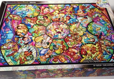 先日、こんなものを頂きまして ステンドアート オールスター ステンドグラス なるもの なんと、 透明 のパズルなんです。 しかも、ディズニーオールスター。 プラスチックで出来ていて、パチンとハマるため 糊付け不要だそうです。 ちなみにこれは1000ピースです。 実際は26×39個で1014ピース入っているらしいです へぇー! 14へぇ!(古) ブログに載せるつもりが無かったので 画像が箱と出来上がりのものしかないのですが・・・ 厚さは紙のパズルと同じくらいで、透けててキレイです ...