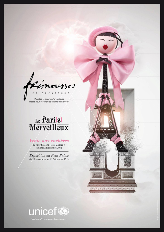 JUGEMテーマ:ブランディボアールの家具があるSHOP UNICEF (ユニセフ) は、Chanel、Christian Dior、Lanvin Pradaなど、合計42のラグジュアリー・ブランドが 「ワンダフル・パリ」をテーマにデザインした一点物のドールを 2013年12月2日に開催するオークション・イベント 「Frimousses de créateurs/クリエイターの人形」で出品すると発表。 どれも素敵でおしゃれなビビット感あふれるドール達♪ プティ・パレで12月1日まで展示されているそうです。 UNICEFフランスサイト⇒★ The fashion post(日本語)⇒★