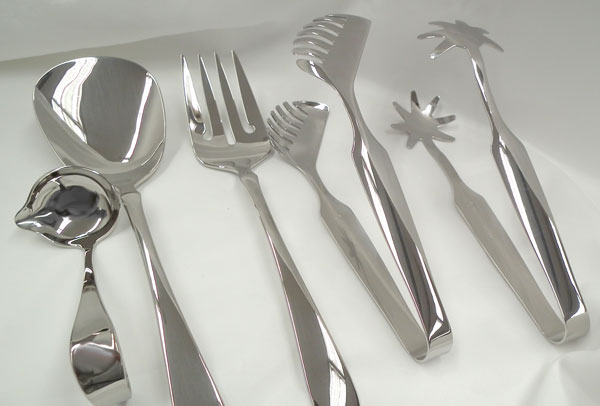 JUGEMテーマ:ネット通販 EモノR−ショップお買い得品情報! 大皿で取り分けの時に便利なサービングカトラリー 特に普段使いはお手入れが簡単で価格も控えめ、 そしてシンプルなものが便利です 左より オイルレードル(注ぎ口付きの優れもの、器にかけられるようにハンドルが湾曲してます) サービングスプーン&サービングフォーク(約21cm) パスタトング(約17cm) サラダトング(約17cm) 等々・・・ ステンレス製サービングカトラリーアップしました ...