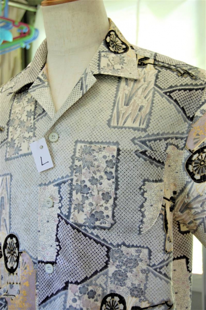 JUGEMテーマ:ネット通販 EモノR−ショップお買い得品情報! 新作着物リメイクアロハシャツ紹介! 訪問着着物リメイクアロハシャツ サイズ L 古い着物を解いて作っています このアロハはヤフオク出品です https://page.auctions.yahoo.co.jp/jp/auction/j503996135 和風アロハシャツと検索 胸回り 116 袖丈 25 着丈 73 肩幅 48 素材は 正絹(絹100%)使用 サイズは 男女兼用・女性はやや大きいです。 ...