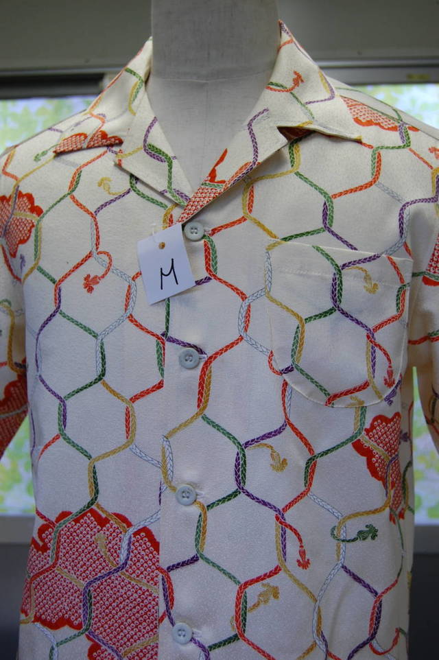 JUGEMテーマ:ネット通販 EモノR−ショップお買い得品! ◆ : 今日の着物リメイクアロハ サイズ M (今日の価格 6,200円)ここに本文を記入してください。 素材ー正絹(絹100%) ◆ : 男女兼用 ◆ : 女性は打ち合わせが反対に! ◆ : 全体柄 オフ× 赤〈紐結び柄) サイズ M 胸回り 110 袖丈 24 着丈 69 肩幅 45 寸法確認 及び出品サイト ここ ⇩ http...