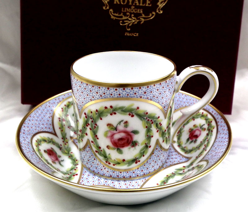 オリジナルは1777年、フランス、セーブルのカップです。 薔薇の花とミルテという葉っぱのリース、 空間は真紅とブルーのドットで埋め尽くされています。 なんとなくクリスマスを連想しませんか? この季節にぴったりのように感じます JUGEMテーマ:趣味 JUGEMテーマ:花のある暮らし JUGEMテーマ:ネット通販 EモノR−ショップお買い得品情報!