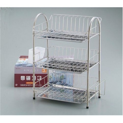 まな板専用受け付き。 たっぷり置ける食器かご 水切バスケット 箸など小物の収納に便利なポケット付き。 まな板も専用の受けが付いてスッキリ収納。 衛生的なステンレストレーはスライド式でお手入れ簡単。 販売価格:4,555円 お求めは ステンレス製水切りかご(水切りラック/キッチン用品) 3段式 幅40cm ポケット付き 『エマーブル』 ■スペック サイ...