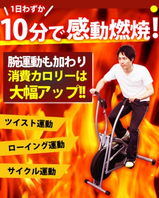 エアロバイク ウエスト・腕・背中などの 上半身も同時に鍛える ウエストや上半身も。1度に全身を鍛えるバイク。ハンドルが前後に稼働するため、ペダルを漕ぎながら、ウエスト・腕・背中などの上半身も同時に鍛えることができるバイク。 1度で全身を動かせるから、カロリー消費量もなんとウォーキングの約3倍! 販売価格:14,800円 お求めは 【上半身も同時に燃焼】...