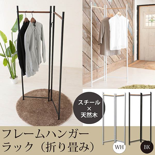 マットコート仕上げの大人なハンガーラック スチール×天然木の組み合わせがモダンでスタイリッシュな雰囲気を演出 上品で艶のないマットな質感のスチールは天然木との相性が抜群◎ 洋服が掛けやすく選びやすいオープンタイプ 使わない時は半分に折りたたんですき間に収納可能です 広げた状態でも圧迫感が少なくお部屋のインテリアにも合わせやすいデザイン 省スペースなので玄関や、脱衣所に設置するのもGOOD◎ マット質感のスチールにハンガーバーの天然木をプラスする事によ...