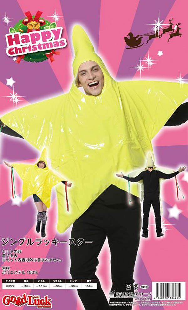 【2016年クリスマス】 とにかく目立ちたい人にオススメ! 星の形の面白コスチューム! 腕にゴムを通して着用します。 歩くたびに鈴がリンリン♪ 爆笑間違いなし! 販売価格:3,672円 お求めは 【クリスマスコスプレ 衣装】ジングルラッキースター ■スペック 【セット内容】着ぐるみ 【素材】ポリエステル100% 【洗濯表示...