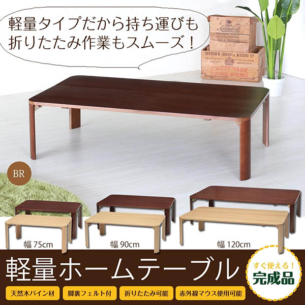 天然木パイン材使用。軽量木目調折り畳み机 ちゃぶ台 ◇◆重厚感があるのに軽量で持ち運びラクラク◇◆ ライフスタイルに合わせて選べる3サイズ展開 「毎日テーブルを出したりしまったりが大変!」、「別の部屋にテーブルを移動したいときが大変!」...というお客様の声から生まれた軽量ホームテーブル! 天板はポリウレタン樹脂塗装で仕上げてありますので、傷がつきにくく滑らか◎ パイン材特有の柔らかく温かみのある木目で、節が多いのが特徴です。...