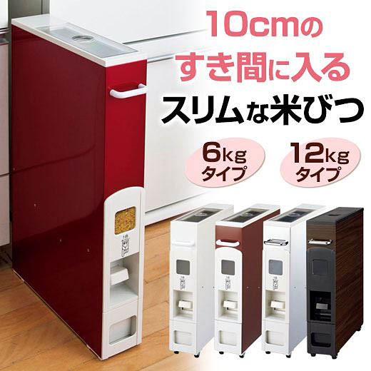 シンク横や食器棚とのすき間(10cm以上)に置ける ライスストッカー/保存ケース お米の保管スペースは結構かさばるもの。 シンク横や食器棚などのちょっとしたすき間にピッタリのスリム米びつはいかがですか? 長年愛されているロングラン商品。無洗米にも対応しています。 ◆完成品(キャスター・取っ手のみ取り付け) 木目調 販売価格 7,179円 ■スタイリッシュ・スリム米びつ 【2: 12kgタイプ/杢目調】 キャスター/取っ手付...