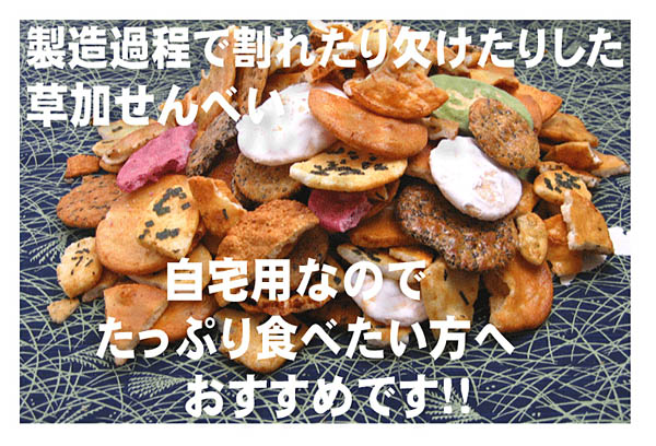 煎餅の名産地・草加からお取り寄せ♪ ポリポリ、カリカリ、サクサク♪ どうせ割って食べるんだから 【訳あり】でOKという方におすすめです。 ★1,000gは驚きのボリューム!! ★訳あり9種類以上の煎餅をどっさり詰めました♪ ★熟練の職人が焼き上げる草加せんべい 【訳あり】たっぷり1,000gの草加せんべい 素材や製法はそのまま、製造過程で割れたり欠けたりしただけで品質や味には何も問題ありません。 自宅用なので たっぷり食べたい方へおすすめです!! ●1kgどっさり詰め合わせて...