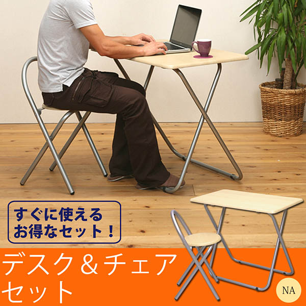 パソコンデスク/作業台/勉強机等に! 木目デスク&チェアーセット ◇◆無駄のないシンプルなデザインが魅力です◆◇ パソコンデスク、ミシン台、宿題用の勉強机など、いろんな用途で自由に使えるのがうれしい♪ テーブル1台とチェア1脚のセット テーブルもチェアも折りたたみ可能で使わない時はコンパクトに収納可能★ お部屋にあまり家具を増やしたくない方には大変便利なデスク&チェアセットです テーブルは赤外線マウス使用可能! PCデスク、作業台、勉強机などマルチに使っていただけます◎ どんなお部屋とも相性...