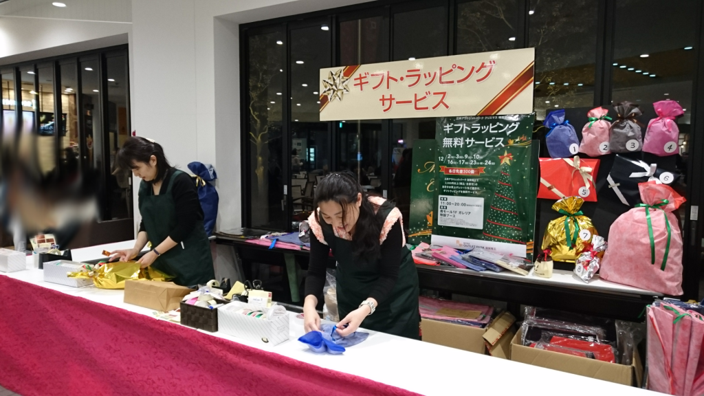 JUGEMテーマ:ラッピング 本日も先週に引き続き、「三井アウトレットパーク滋賀竜王」でのラッピングサービスのお仕事に参加させて頂きましたヽ(^0^)ノ 今日も沢山のお客様のプレゼントをラッピングさせて頂きました♪ 明日も参加させて頂く予定ですので、沢山のご利用を心よりお待ちしています(*^▽^*)