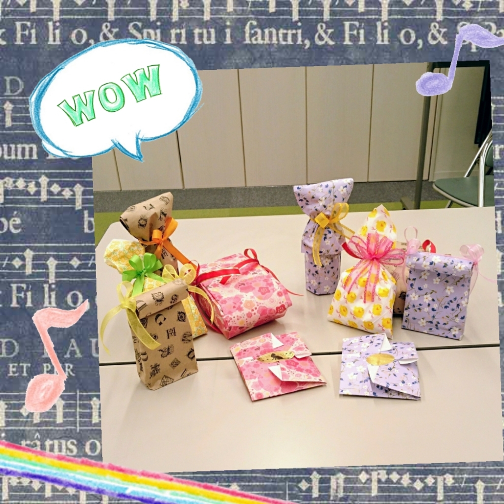 JUGEMテーマ:ラッピング 月に 1回、第3土曜日に伺っている「JEUGIAカルチャーイオンタウン豊中緑丘」でのレッスンで制作した作品です! 今回も色々なお話をしながら、たくさんの作品が仕上がりました(^_^)v 8月2日(水)には夏休みの特別レッスン(1回のみの単発レッスン)も行います(^_^) (夏休みレッスンはラッピング以外のレッスンもあるみたいですよ♪) ちなみに、ラッピングレッスンは↓↓↓の写真の感じです(イメージですので、当日、材料は若干違う場合もありま...