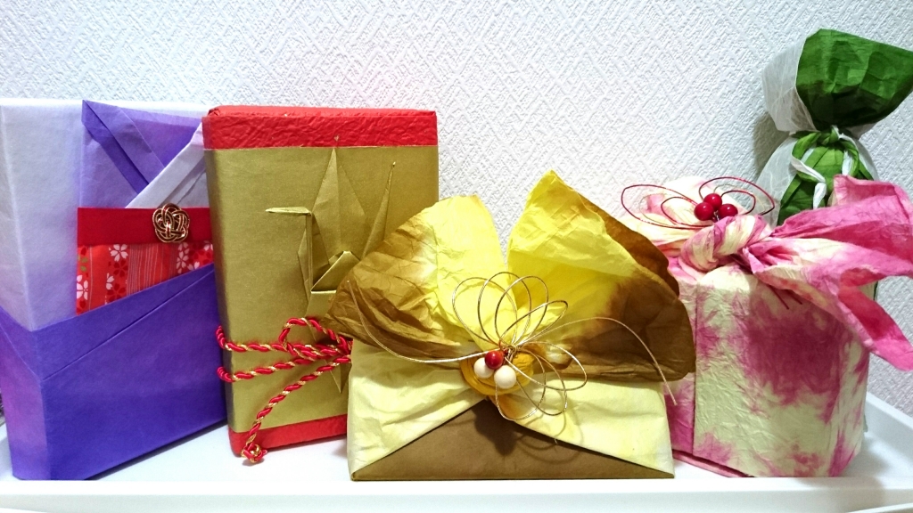 JUGEMテーマ:ラッピング 先週と今週でラッピング協会大阪講習室にて「モダン和風ラッピング」と「和風ラッピング」の講習を担当させて頂きました。 夏は特に浴衣・うちわなど、和風の物がよく目に付く季節なので、和風ラッピングの気分も高まりますね(^_^)b 和紙を触っていると、しなやかで、強くて、温かみがあって、ほっこりします(^_^) そして、昨日は毎月 2回、レッスンに伺っている「HOS小阪カルチャー」さんにてギフトラッピングの応用(アレンジ)レッスン! 今回もワイワイ楽し...