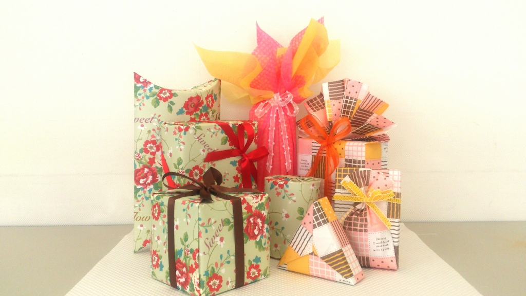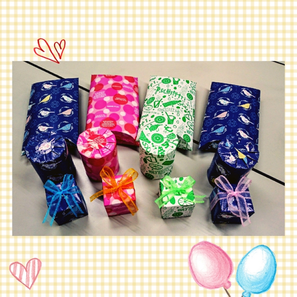 JUGEMテーマ:ラッピング 今月から月2回で始まったHOS小阪カルチャーさんでのラッピング講座! 2回目の今回は、円筒形の包みと前回のおさらいの枕型の箱(ピローボックス)の包み、コロッとした小さい立方体の箱の包みにはリボンをかけて仕上げました(^_^)b 来月もまた楽しくラッピングしましょう♪ よろしくお願いします(*^_^*)