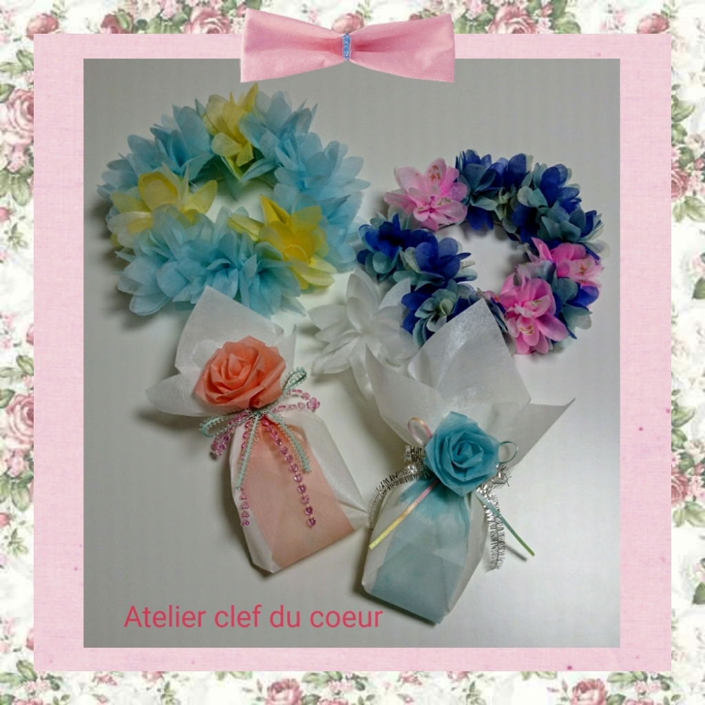 JUGEMテーマ:ラッピング 先週に引き続き、今週もエレガンスクラスのレッスンに来て頂きました(^_^) 今回は 2つの包みと、プチフラワーを色の組み合わせを考えたり、形を変えたり、重ねる花の枚数を変えたりと工夫して、変化を確認しながら沢山作って頂きました。 今日作ったプチフラワーのテクニックを駆使して、次回はリースを作ります(^_^)v 色や枚数の組み合わせ、形など考えて来て下さいね〜(^_^)b 次回、リースが出来たら、またこちらで写真をご披露させて頂きます...