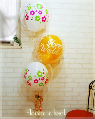 お花や自然が好き、またはフラワー関係のご職業の方へのバルーン電報にオススメします。 かわいらしいお花の模様のバルーン、結婚祝いのメッセージバルーン、すべてクリアなTバルーンでコーティングする形なので従来のゴム風船より、長持ちします。(浮遊期間1か月程度、じょじょにヘリウムガスが抜け萎んでいきます) 素朴さあり、おしゃれ感あり、ちょっぴりゴージャスかつ、まとまり感のあるバルーン電報ですが、圧迫感がないので見ていて飽きない不思議な感じです。今までになかった作品です。 ...