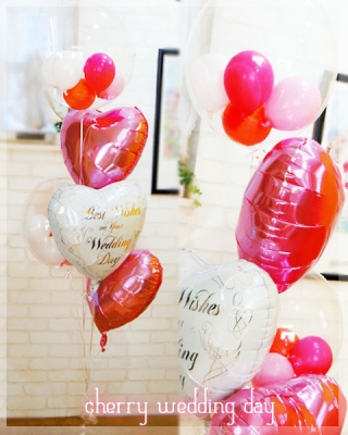 「旦那様がサクランボ農家なのでチェリーピンクを使って…」というお客様のリクエストからうまれたバルーン電報です。 チェリーピンクが派手目なので、他は色合いを抑えてシックになるように調整し作成しました。 サクランボの様なインサイダーバルーン、チェリーピンクのハートバルーン、best wishes on your wedding dayのメッセージ入りバルーン。 春の結婚式におすすめです。少しだけゴージャスな感じがいいという方にもおすすめです。 JUGEMテー...
