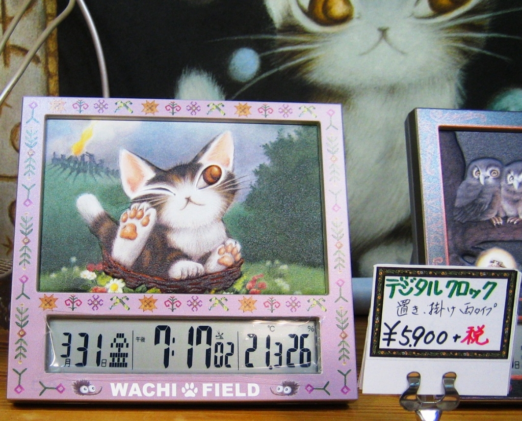 JUGEMテーマ:新着商品 わちふぃーるどの時計が入荷しました。 しかもデジタル。 そして電波時計。 写真では棚に置いてありますが、もちろん壁掛けもできます。 私個人の感想としては、・・・時計というより、「絵」のうような感じで飾りたい。 そんな感じの時計です。