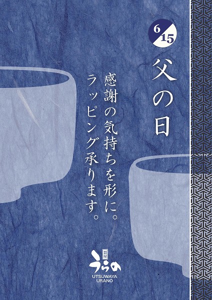 夏のような暑い日が続いていますが、今日から6月。 さて6/15は父の日です。 当店では只今、父の日のプレゼントラッピングを承っております。 包装した物にちょっとしたお気持ちを添えさせて頂きます。 無料ですのでお気軽にお申しつけ下さい。 ビアカップなど父の日にぴったりな器を色々とご用意して皆様のお越しをお待ちしております(^^) JUGEMテーマ:父の日ギフト いつもがんばっているお父さんへ心のこもったプレゼントをあげよう