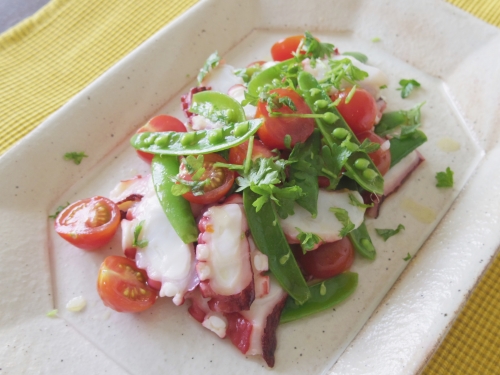 JUGEMテーマ:和食器通販 器花-kihana-で最初にご紹介するのは、八角長方皿です。 ショップページトップのスライド写真にも登場していますが、 うちでもよく使っているお皿です。 ゆでたこのマリネを盛ってみました。 使いにくそうに思える形ですが、深さがあるので、煮魚に使ったり、 炒め物に使ったりと、うちでは使う頻度が高いお皿です。 横長なので、テーブルの場所を取らないし、すっきりとして見えるんですよ。 ちなみにレシピですが、熱したオリーブオイル(大さじ4くらい)に、 薄切りのにんにくと唐辛...