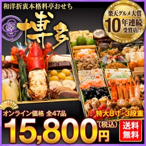 JUGEMテーマ:おせち・正月料理食材お取り寄せ 今回紹介するのは 和洋折衷本格料亭おせち『博多』です! 2017年おせち予約!和洋折衷本格料亭おせち『博多』 Shop of the Year 3年連続受賞!! 楽天グルメ大賞 10年連続受賞店!! その他にも数々の賞を受賞! 和洋折衷本格料亭おせち『博多』 美しさ、美味しさ、大きさ すべてがそろったこだわりの おせち 製造のこだわりを隅々まで知る2人が推薦する 特に味わっていただきたい4品! ・オマー...