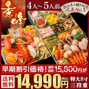 JUGEMテーマ:おせち・正月料理食材お取り寄せ 今回紹介するのは お客様が欲しいおせちを揃えています!「みんなのお祝いグルメ」 お祝いの宴をご家庭でおいしく、楽しく!【みんなのお祝いグルメ】 とにかく おせち選びに迷ったら! おせちだけでも これまで累計40万台以上を販売してきた 通販専門 20有余年の食品卸会社がおすすめする ご満足必至のお重詰めおせち!! 特選おせち 2017年新春 今なら特選おせちが送料無料 2017年新春 みん...