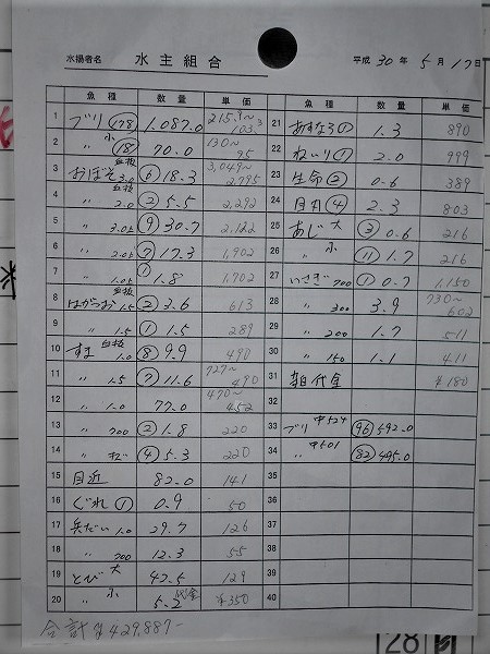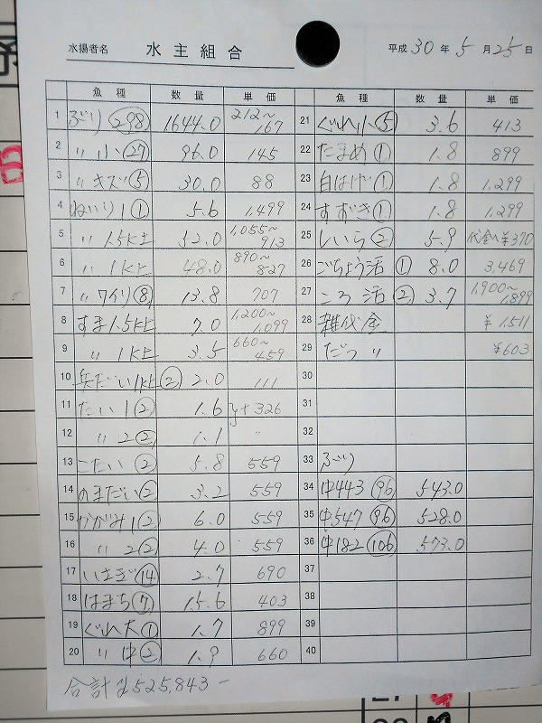 古満目漁港落札価格 | 2018.05.17 Thu 22:19