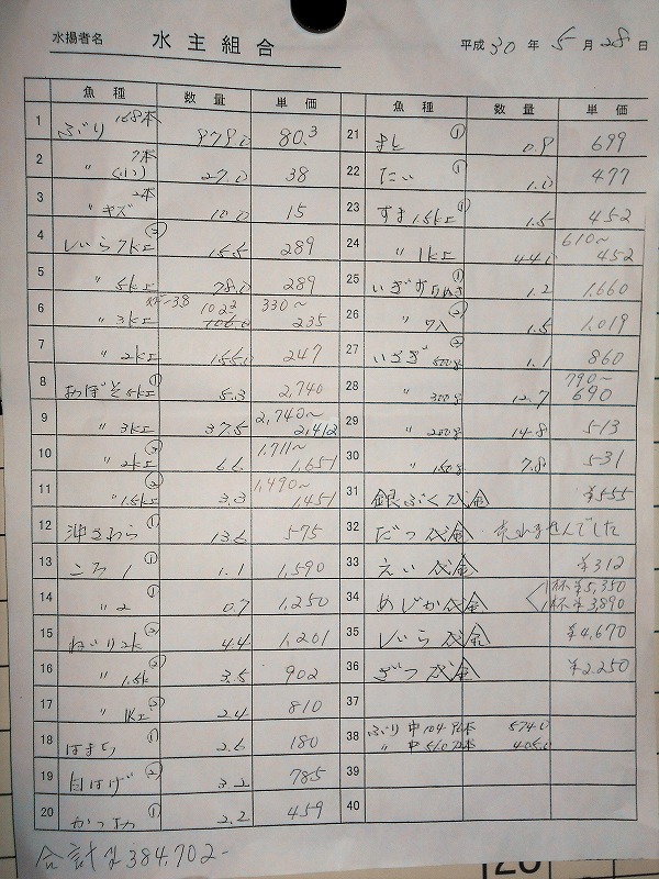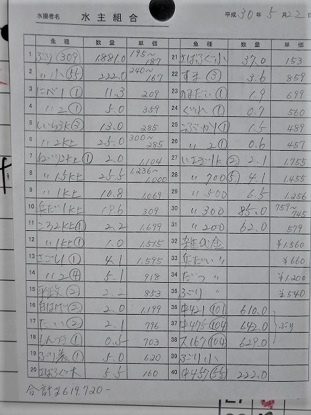 古満目漁港落札価格 | 2018.05.19 Sat 00:21