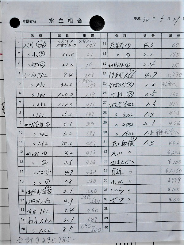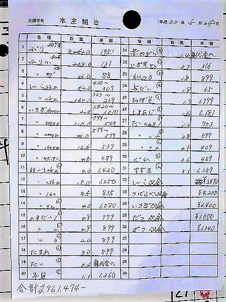 古満目漁港落札価格 | 2018.05.29 Tue 10:10