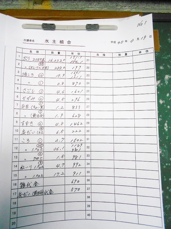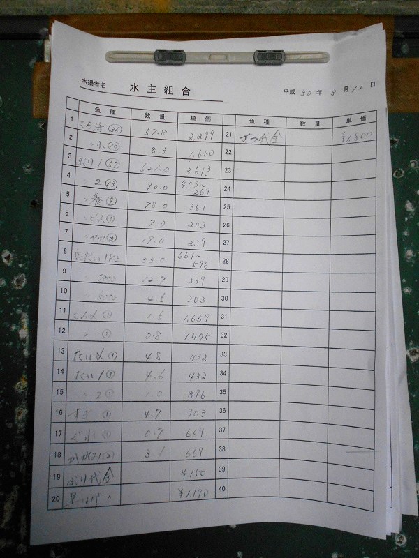 古満目漁港落札価格 | 2018.03.20 Tue 18:47