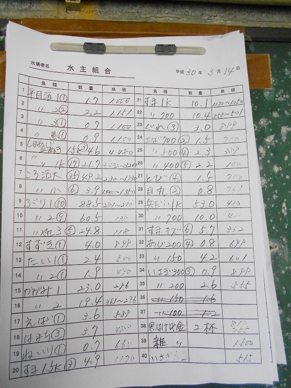古満目漁港落札価格 | 2018.03.18 Sun 20:12