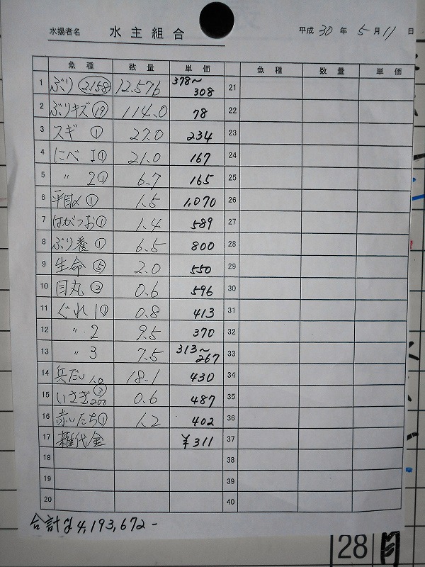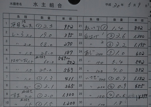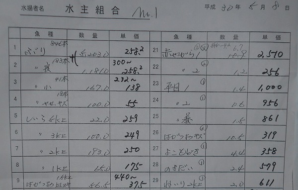 古満目漁港落札価格 | 2018.05.10 Thu 19:19