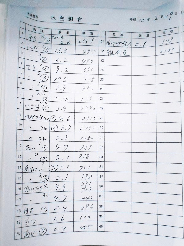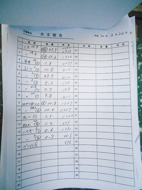 古満目漁港落札価格 | 2018.02.22 Thu 04:57