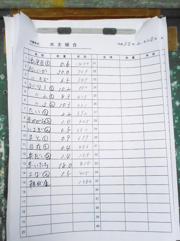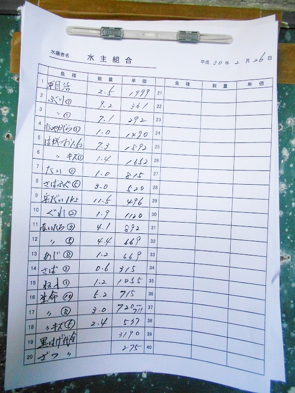 古満目漁港落札価格 | 2018.02.27 Tue 21:43
