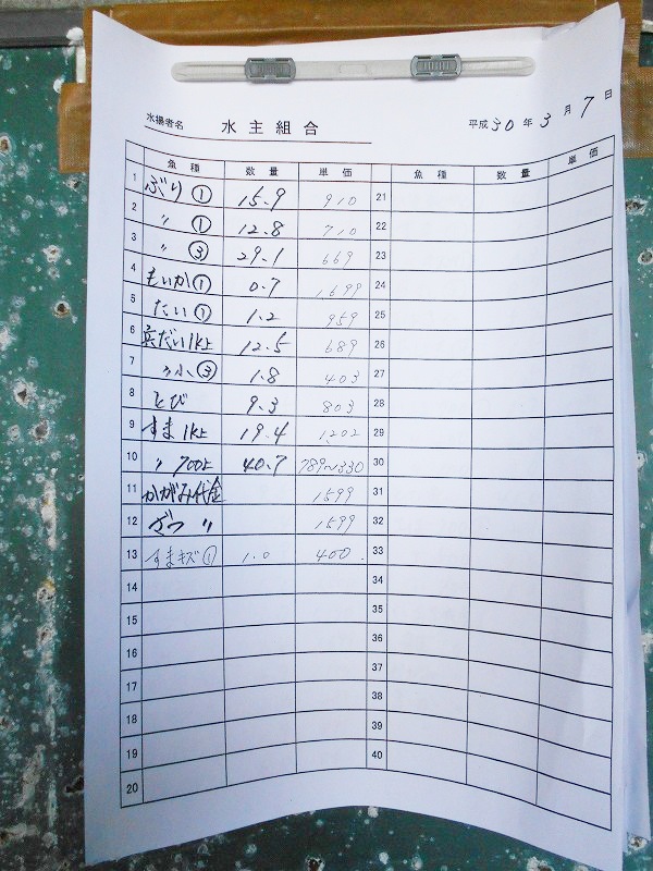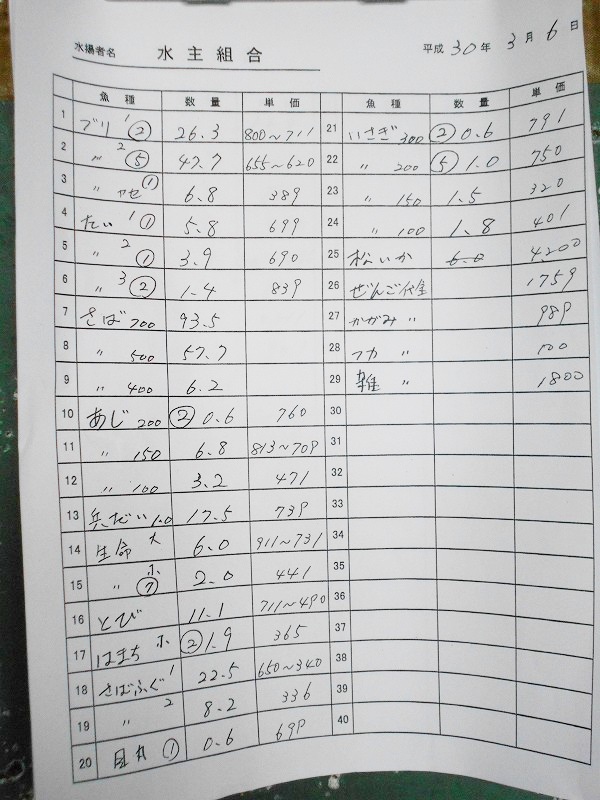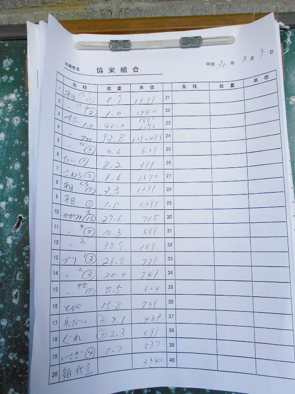 古満目漁港落札価格 | 2018.03.11 Sun 22:55