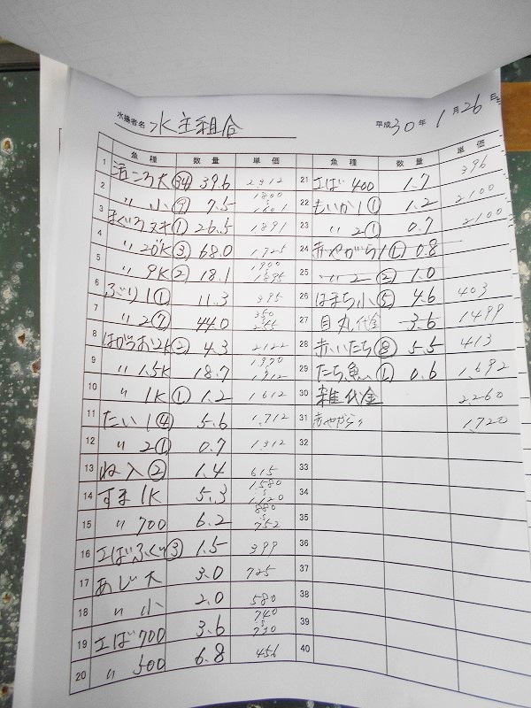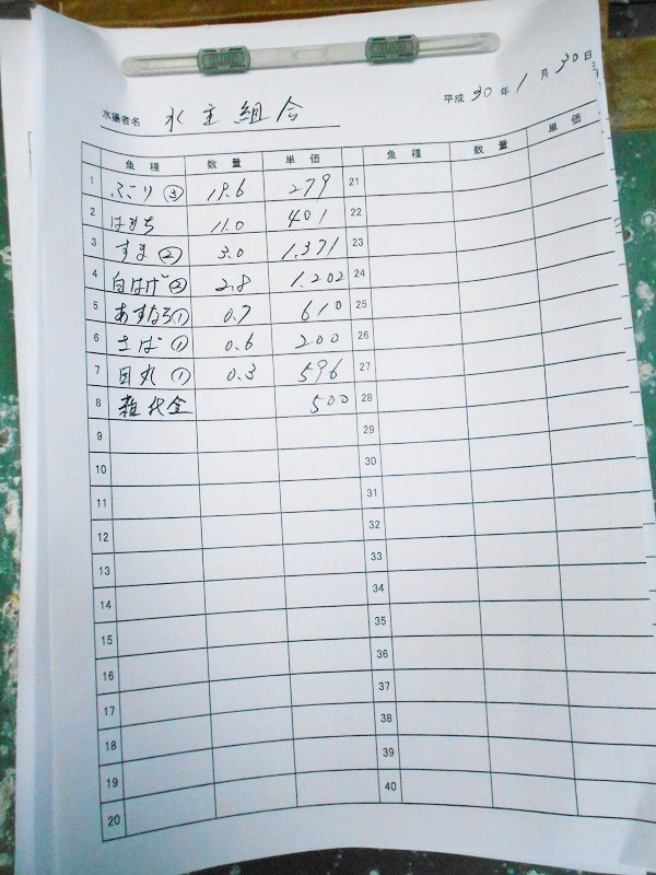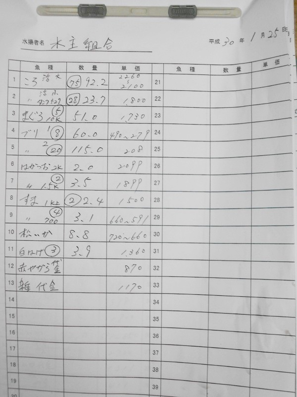 古満目漁港落札価格 | 2018.01.30 Tue 20:13